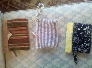 The aunt of a friend gave me a pattern (ME? follow a pattern--puh-shaw!) and the final product is so adorable, Ive got a little crazy. Below are SNAPPYS! They are hand clutches, perfect for money, cellphone and any other little thingy you need.